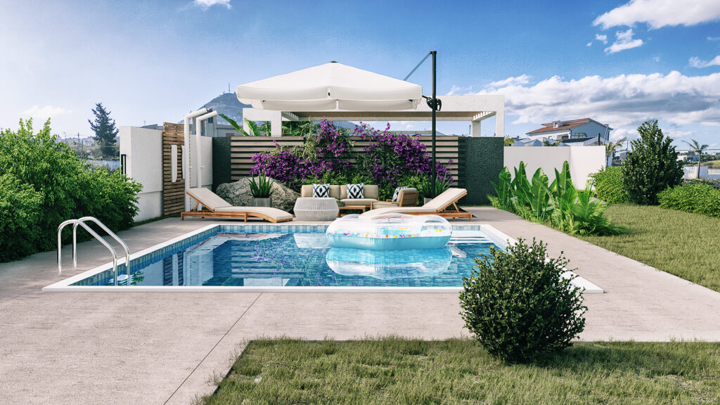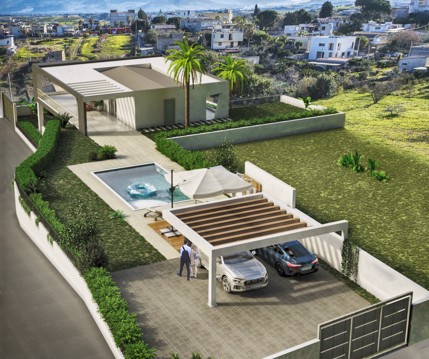 Villa SG Client: Mc building Services: 3d & Print Una villetta unifamiliare con piscina ed ampi spazi all’aperto.